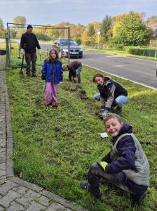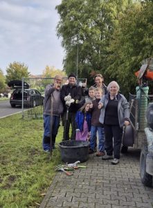 Mit Harke, Schippe, Rechen, Handschuhen und einer Menge guter Laune machten sie sich ans Werk. Die Zwiebeln wurden in kleinen Gruppen an verschiedenen Orten gepflanzt, dabei wurde viel gelacht und erzählt. Besonders auch die anwesenden Kinder hatten ihren Spaß und halfen fleißig mit, die Knollen in die Erde zu bringen. Es war schön zu sehen, wie alle Generationen gemeinsam anpackten und anschließend eine Stärkung einnahmen.
