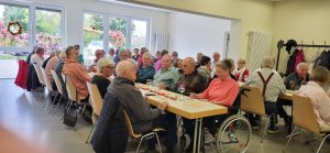 Dank den Kochkünsten von Elfriede und Wolfgang Schwarz gab es ein gemeinsames Mittagessen, sodass niemand an diesem Tag allein zu Hause sitzen musste. Das leckere Menü bestand unter anderem aus einer traditionellen Markklößchensuppe, gefolgt von zartem Rindfleisch mit Meerrettich – ein echter Genuss für alle! Als Nachtisch wurde dann noch Kaffee und Kuchen serviert.
